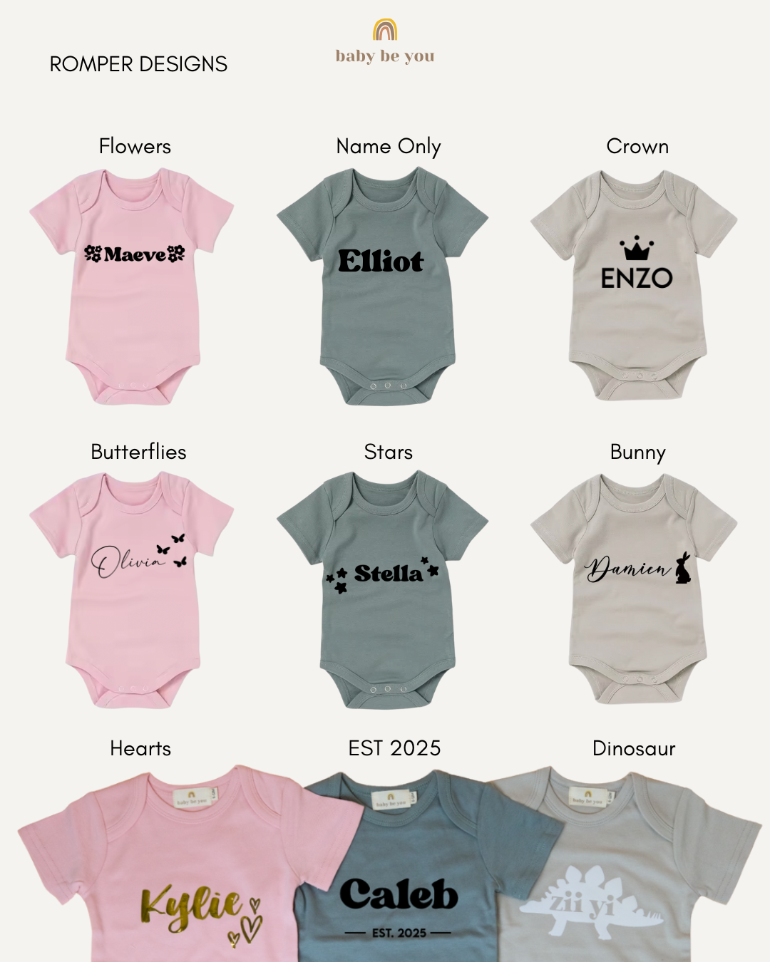 Our buttery-soft GOTS certified, OEKO TEX organic cotton baby rompers are gentle on sensitive newborn skin.